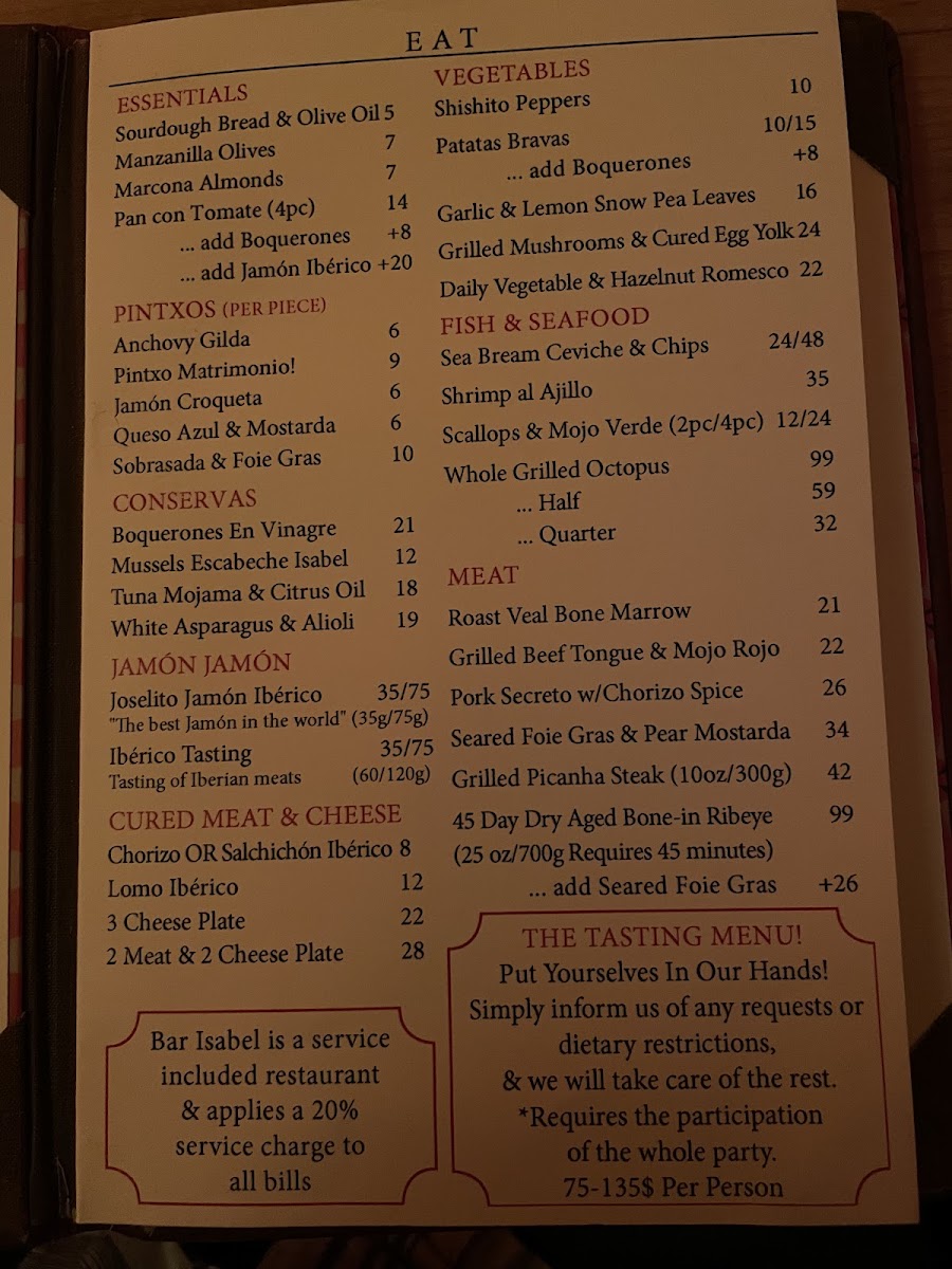 Whether for a special occasion or a romantic date night, Bar Isabel promises a culinary journey you'll want to revisit.